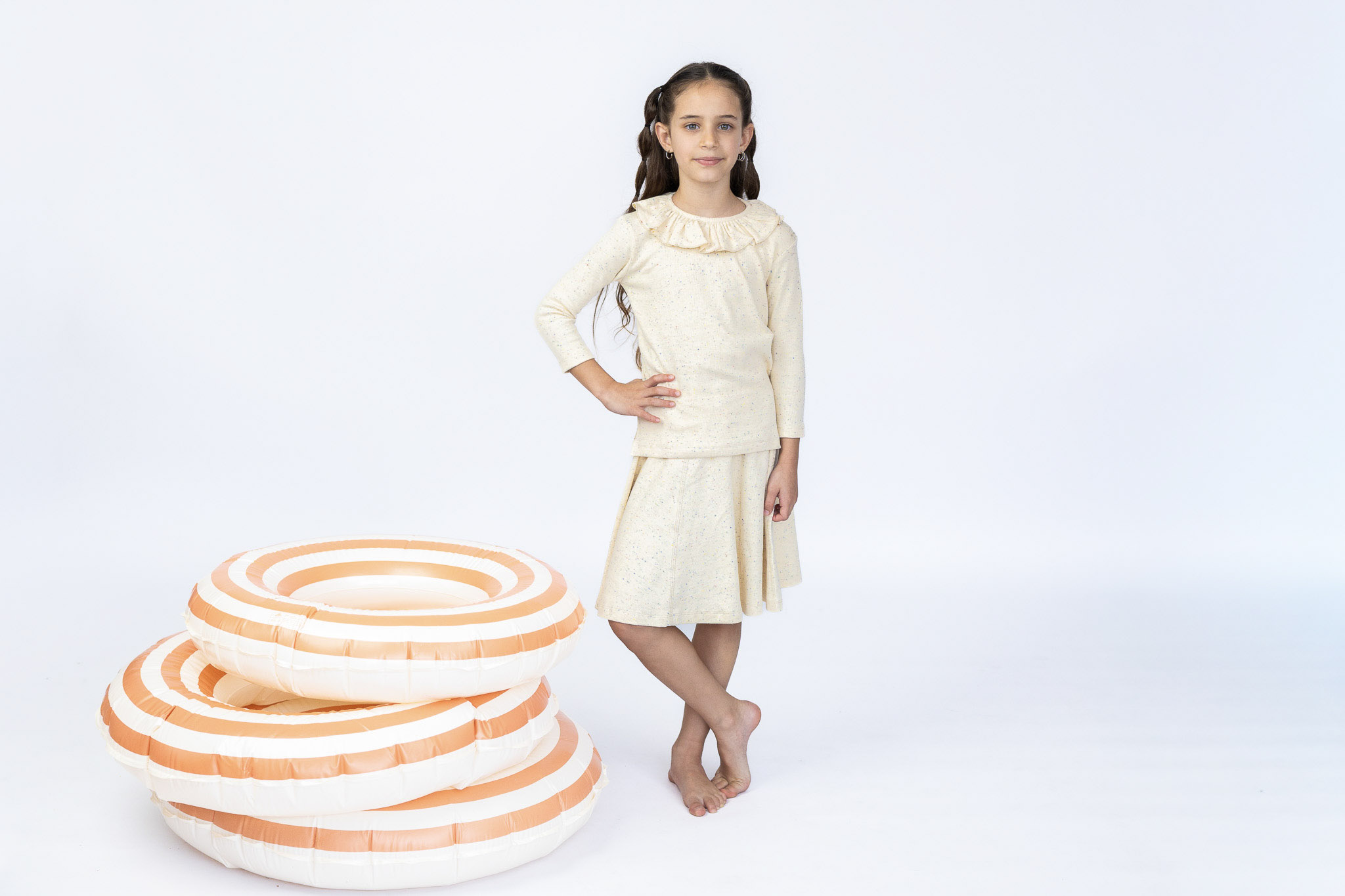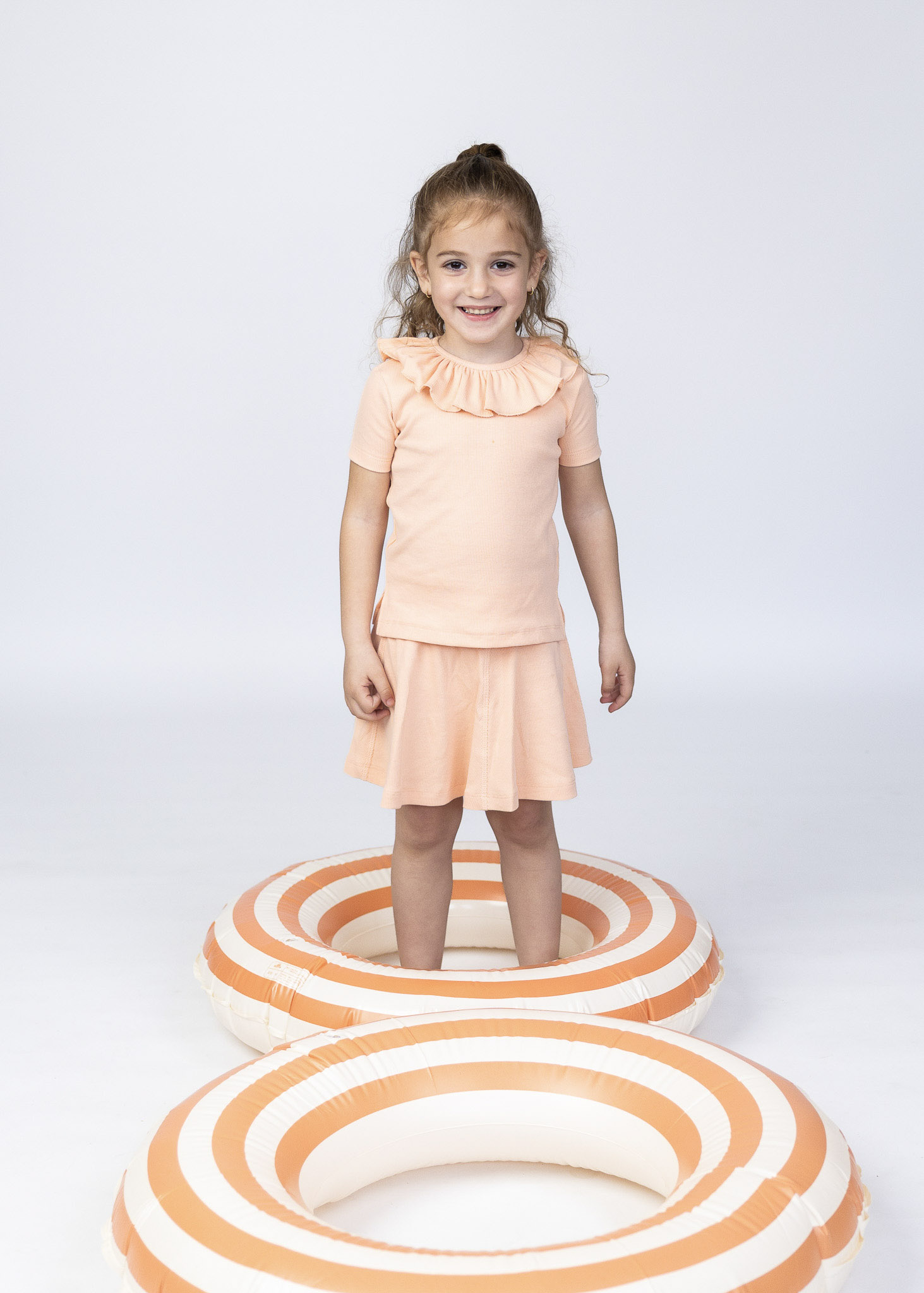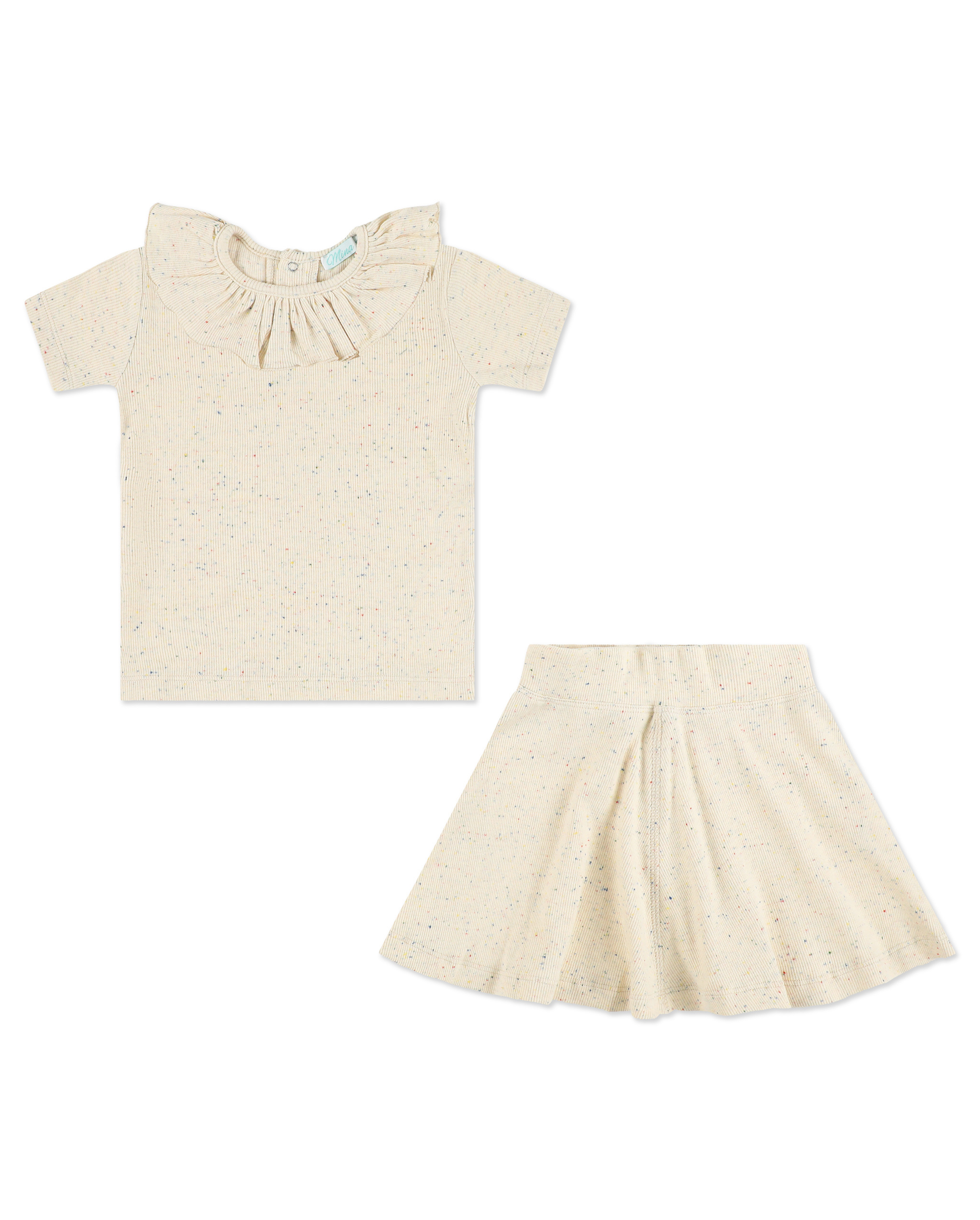 סט חולצה וחצאית ריב צווארון מלמלה שרוול קצר – שיא הסטייל בנוחות מקסימלית