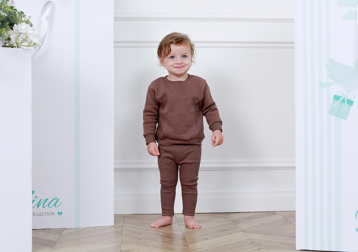 סט חורפי ונוח במיוחד שמשלב בין מכנס ריב צמוד ומלא בסטייל לבין חולצת פוטר חורפית אוברסייז סופר רכה ומפנקת – שילוב מדויק שמעניק לילדים גם חום ונעימות וגם לוק שיקי ועדכני.